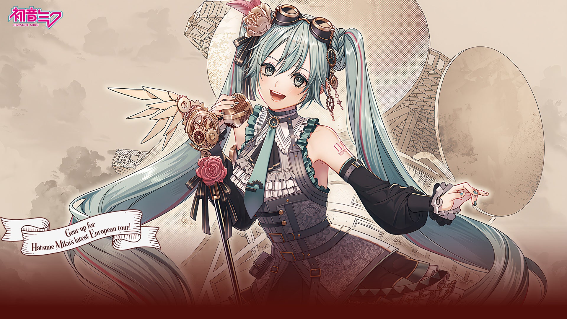 The theme for the European tour visual is “Steampunk.” Illustrator suzunosuke has created an original main visual for the tour. The visuals exude nostalgia, combining a classic and refined theme with retro gadgets such as intricate gears.